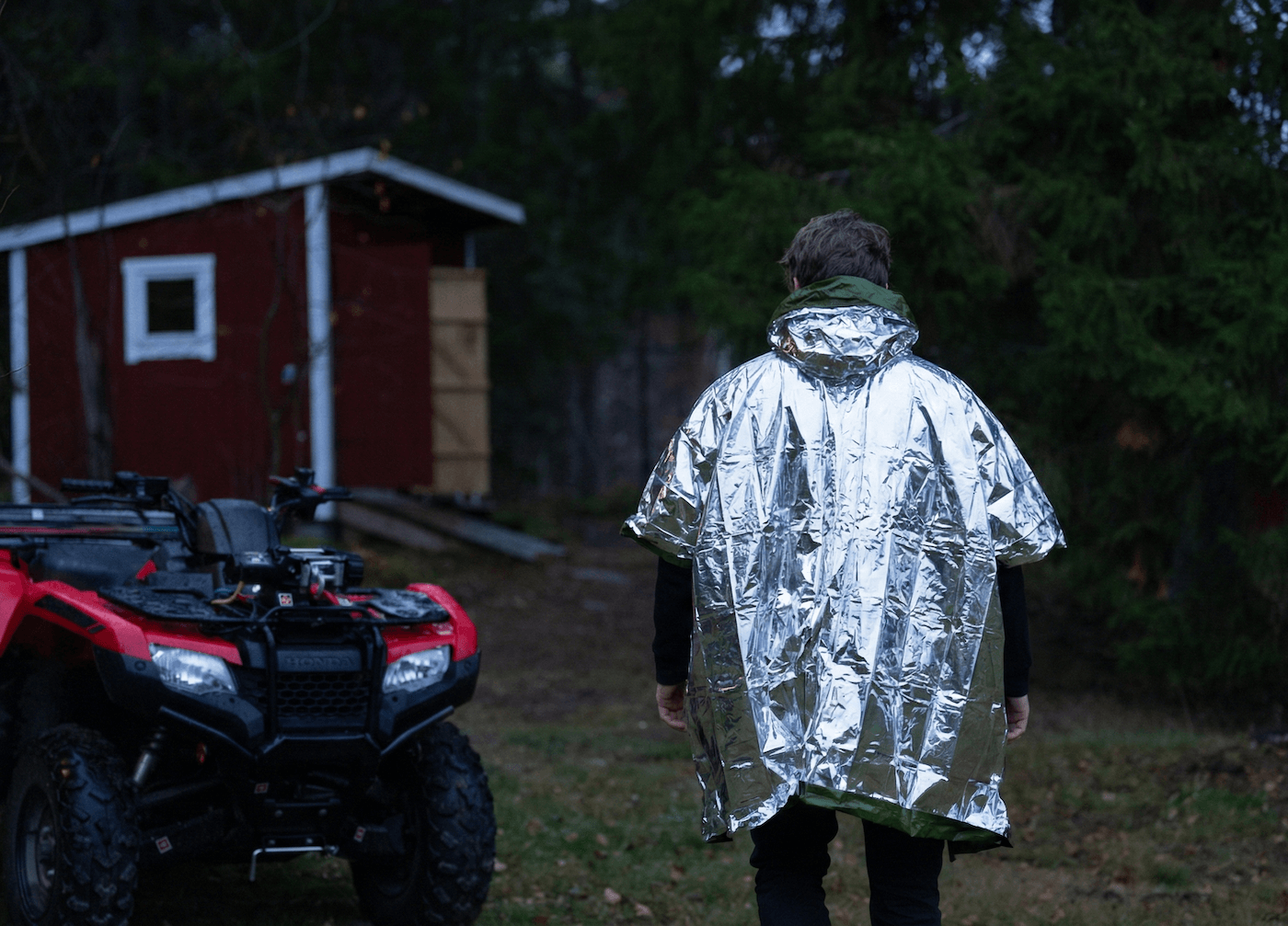 Bereds nödponcho är utvecklad för verkliga nödsituationer – där regn, kyla och vind snabbt kan bli farligt. Tillverkad i värmereflekterande aluminiserad Mylar som skyddar mot väta, minskar värmeförlust och ökar synlighet i terräng.